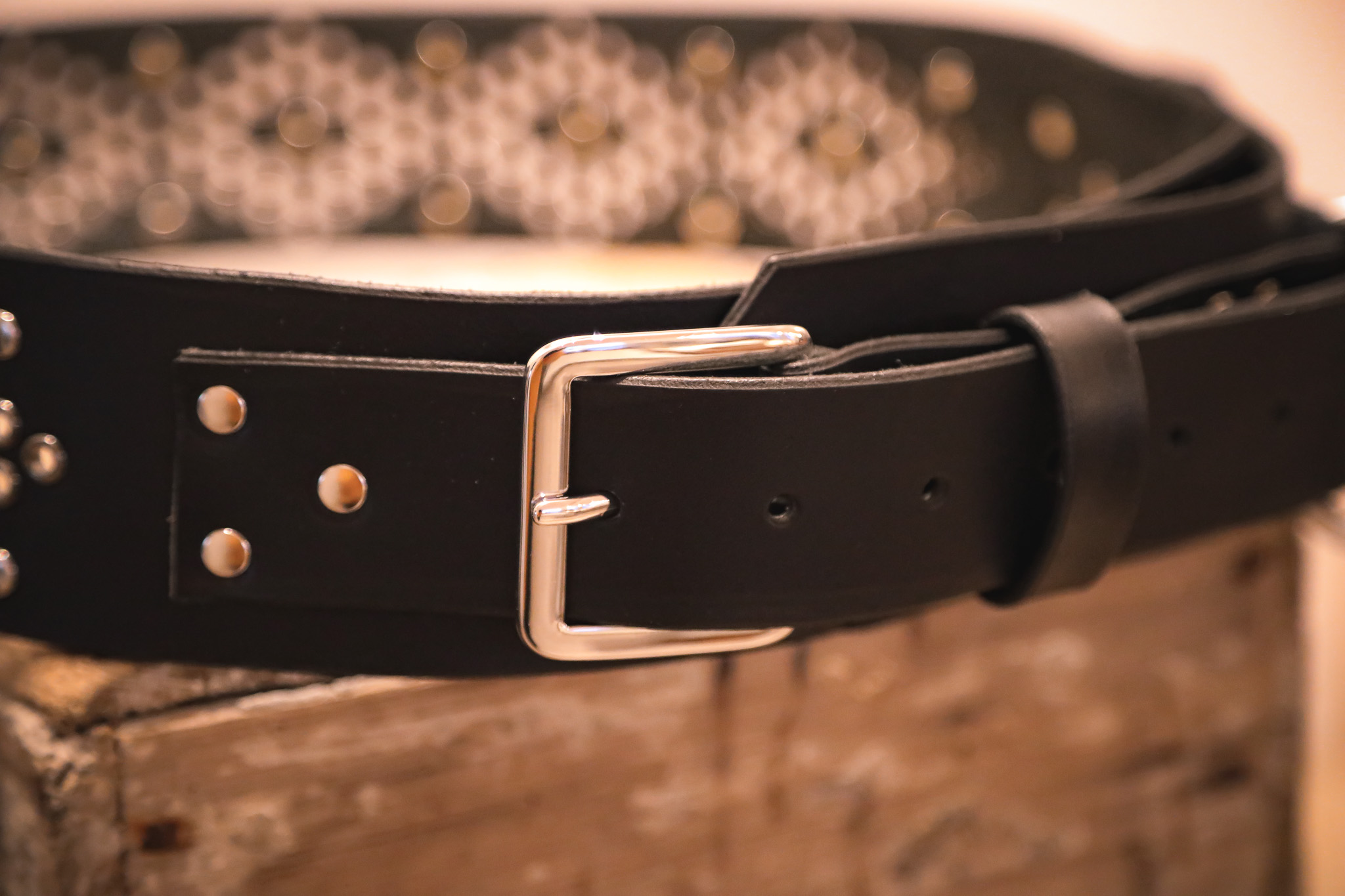 Ett mellanbrett brett bälte som är riktigt snygg att bära utanpå en tröja eller jacka. På dessa bälten ryms mönster med mycket öljetter, men vi har även några enklare modeller. På de 6cm breda bältena sitter en knappt 4cm bred flärp med bältesspänne. Det går bra att sätta tillbehör på denna smalare del - eller på den bredare delen av bältet. Tillbehör till bältet hittar du här. | ![]() |