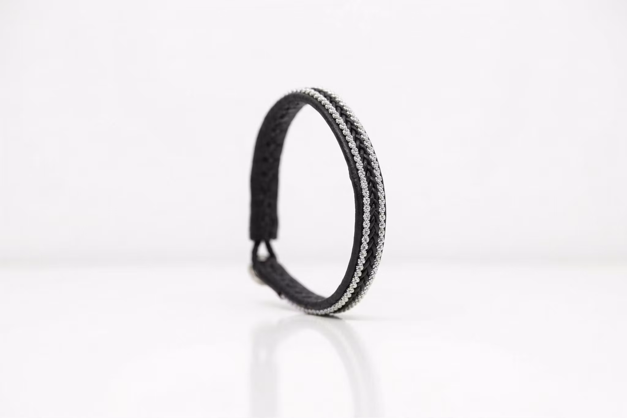 Ett stilrent och tidlöst hantverk som förenar nordisk tradition med modern elegans. Detta tennarmband är omsorgsfullt handgjort och med noga utvalda material. Ett handgjort och genuint hantverk från Norrbotten.