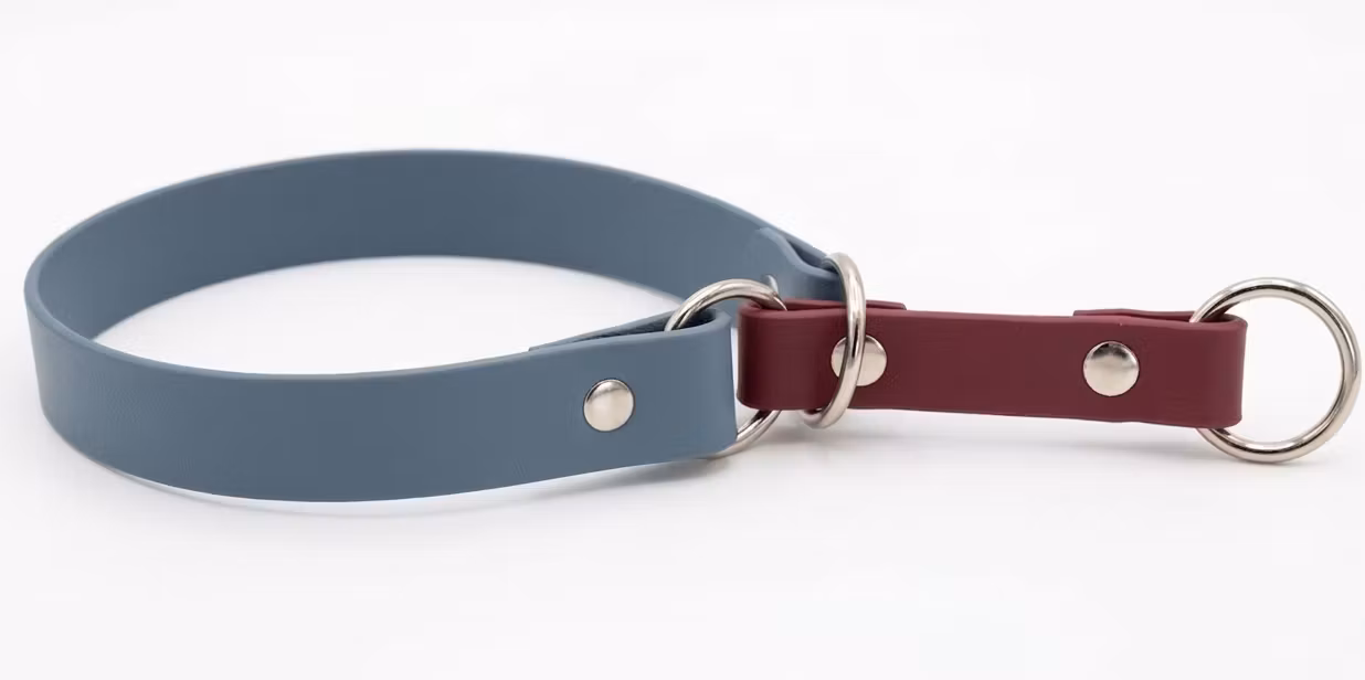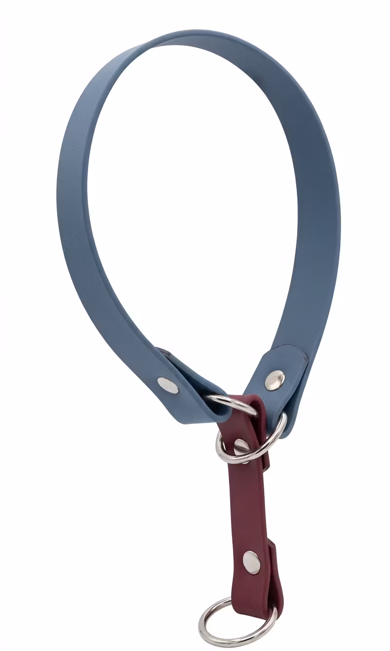 Halsband halvstryp i Biothane®. För 29kr kan du lägga till valfritt namntryck - det går också att montera en lasergraverad namnbricka i aluminium klicka här för att se våra modeller (köper du flera halsband och namnbrickor så ange i ett meddelande i kassan vilket halsband som ska ha vilken namnbricka).